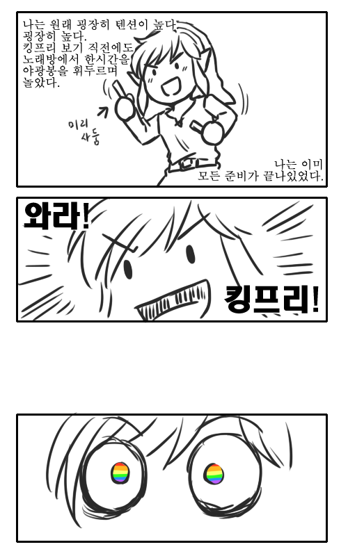 이건 젤다 만화는 아닌데, 젤다 덕질 중에 킹프리 보러 간거라 링크로 그렸습니다(?)