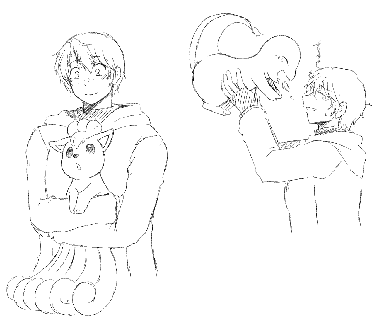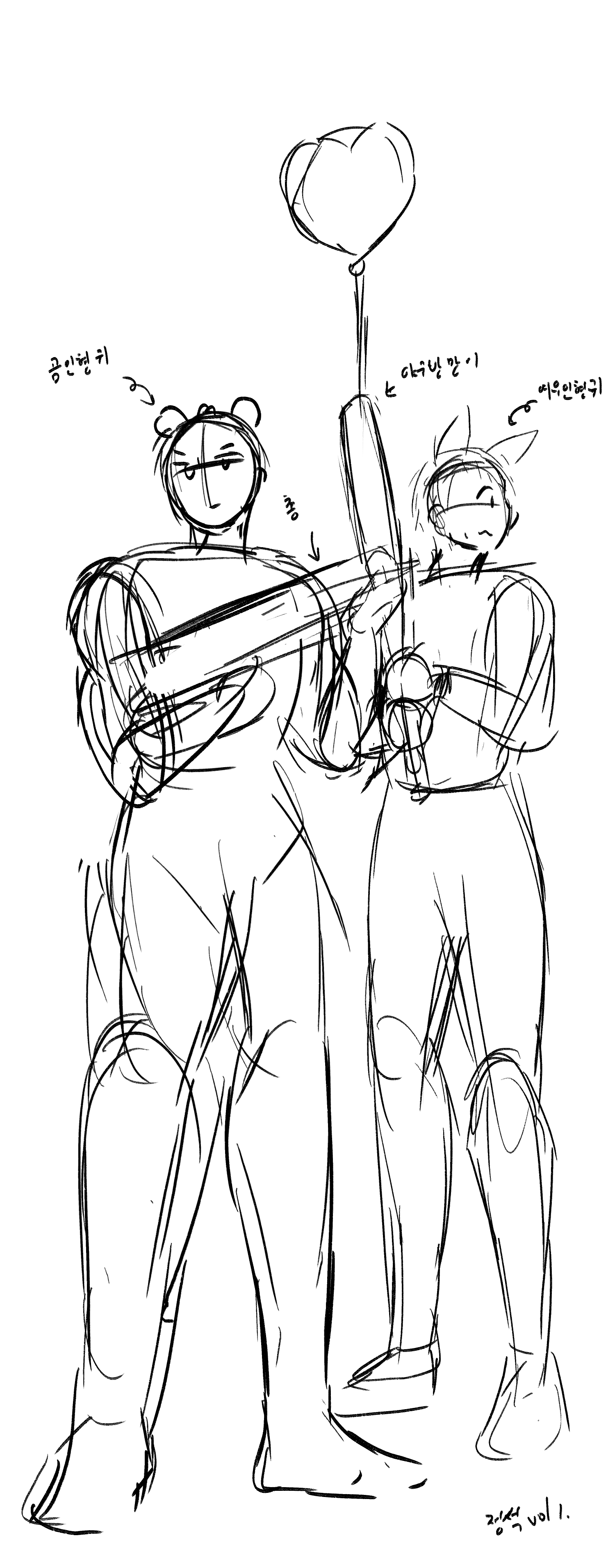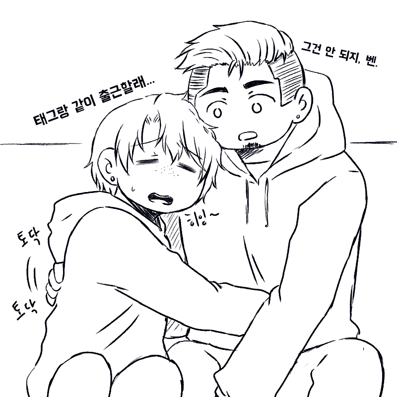 뇨타벤이 작다 보니 태그가 안기 불안해한다는 글을 받구 귀여워서 그렸던 것 같아요(가물한 기억)