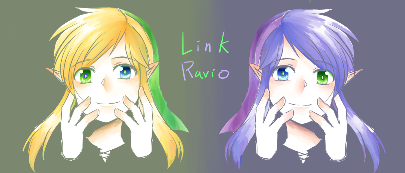 컬러버스 보고 서로 색이 섞이는 라비오와 링크 보고 싶어서 그렸던 것 같네요.